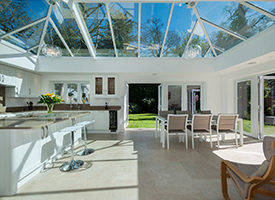 Orangeries are growing in popularity, typically part roof and part glass it’s a conservatory-come-extension but with a real wow factor that is hard to beat. We offer various types of combination roof to suit most budgets. Click here to view our orangery page »